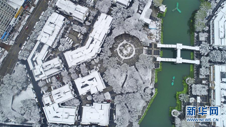 这是12月9日拍摄的浙江省湖州市德清县雪景(无人机拍摄)。 新华社发(谢尚国 摄)