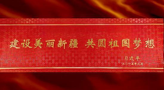 送给新疆的贺匾“建设美丽新疆,共圆祖国梦想”