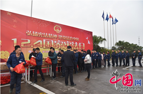 其中,作为践行宪法“七进”主题活动的重要内容,两江新区创新宣传方式,推进了宪法宣传进企业。记者了解到,位于两江新区翠云街道的福耀玻璃有限公司,就以升国旗唱国歌的形式,让广大职工亲身感受宪法、致敬宪法,将宪法条文付诸现实,使宪法真正落下去、活起来。