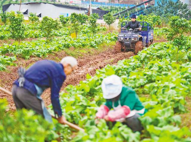 渝北区青龙村,村民黄孝文驾驶多功能运输机将果树苗拉到地里。首席记者 崔力 摄