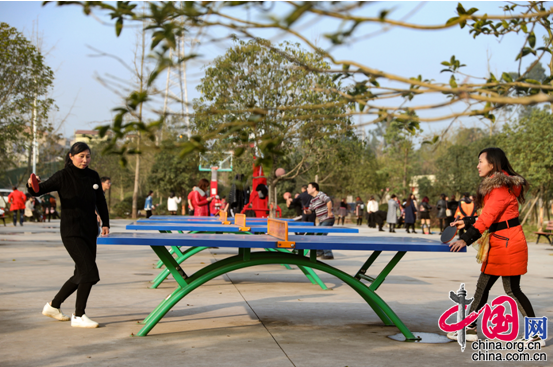 中国网12月24日讯 四川省华蓥市投入惠民资金在新开发的城北公园,专门修建健身步道和篮球、乒乓、羽毛球场等公共健身场所,让市民在青草绿树和鸟语花香中享受休闲健身乐趣。(邱海鹰 摄)