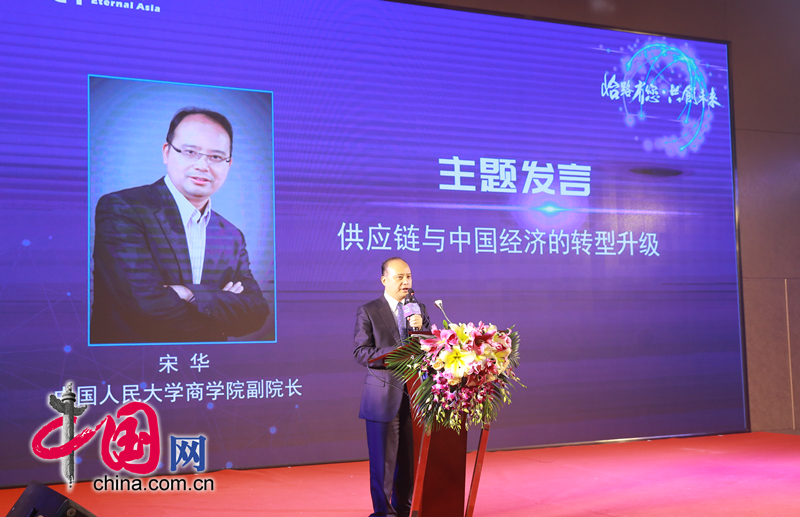 中国人民大学商学院副院长宋华发表主题演讲。宋华认为,今天的供应链是连接供给侧和需求侧两端改革的重要桥梁,没有供应链这个桥梁,很难实现产业领域的真正发展,这个过程任重道远。