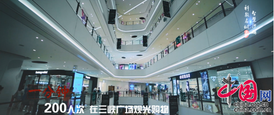 1分钟,200人在三峡广场观光购物,引领时尚潮流;