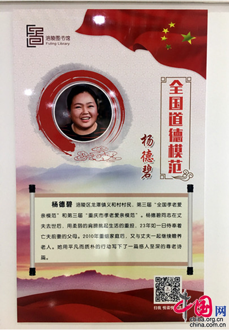 中国网12月29日讯 近日,笔者在涪陵区图书馆展厅看到,一幅幅有关当地道德模范事迹的精彩图文展板,正向人们介绍一个个道德模范人物的引领人们学习道德模范,发挥榜样的力量。