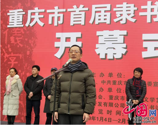 重庆市文联党组成员、副主席龙川宣布展览开幕