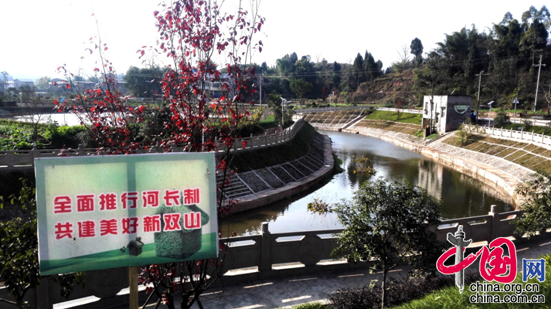 站在河岸望去,改造整修一新的河堤两岸不仅有常绿的桂花,依依的垂柳,太阳能路灯和雕花护栏,还有造型别致的公厕,清澈的河水碧波荡漾,让人心旷神怡。