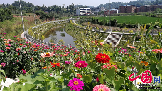 “这条溪河发源于张家沟流域,全长4600米的两条溪河绕场而过。过去,溪河两岸是土坎,年辰久了,垮塌的泥土淤积河床,堵塞河道。平时,河岸堆着垃圾,河面上漂浮着杂物。到了夏季,溪河涨水漫进稻田,给粮食生产造成损失。现在经过综合治理,不但恢复了溪河的水生态,而且防止了两岸的水土流失,把昔日垮塌河堤变成了具有防洪、蓄水、休闲、健身等多功能的生态景观河堤。”镇干部介绍说。