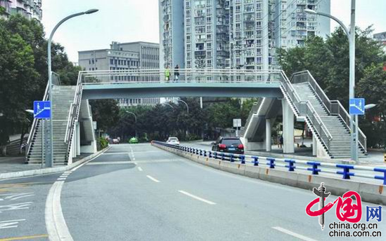 实验小学天湖校区附近新建的人行过街天桥