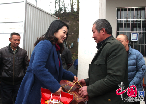 “乡亲们,今天我代表企业的全体员工提前给大家拜年啦,祝大家在新的一年里身体健康,生活幸福,勤劳致富。”这天上午,重庆铜梁威斯特电梯有限公司负责人、铜梁区人大代表吴优琴带着员工来到水星村,与等候在这里的10多户贫困农户拉家常,了解他们的生产生活情况,一边摆起脱贫增收致富的龙门阵,一边把一袋袋大米、食用油和驼绒被送到贫困村民的手上,同时捎上了新春的祝福。
