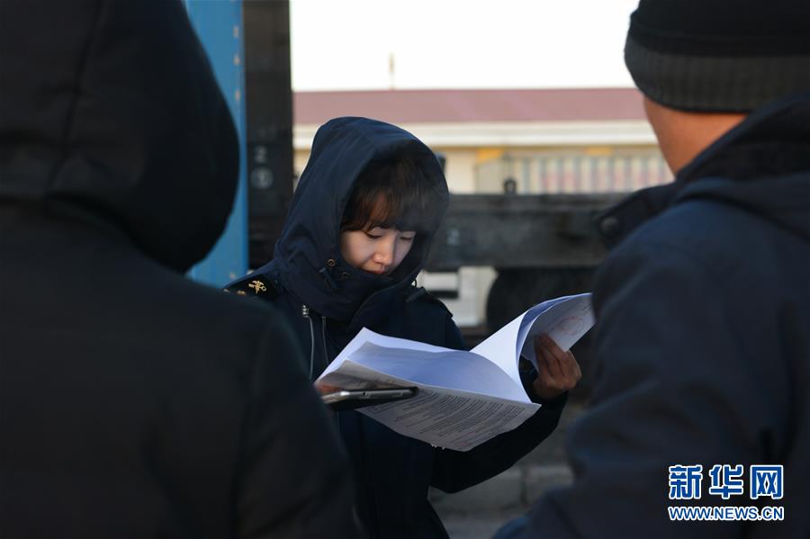 1月10日,满洲里海关工作人员在认真查阅入境货物的报关单据,并与实物进行比对,以确认是否“单货相符”。