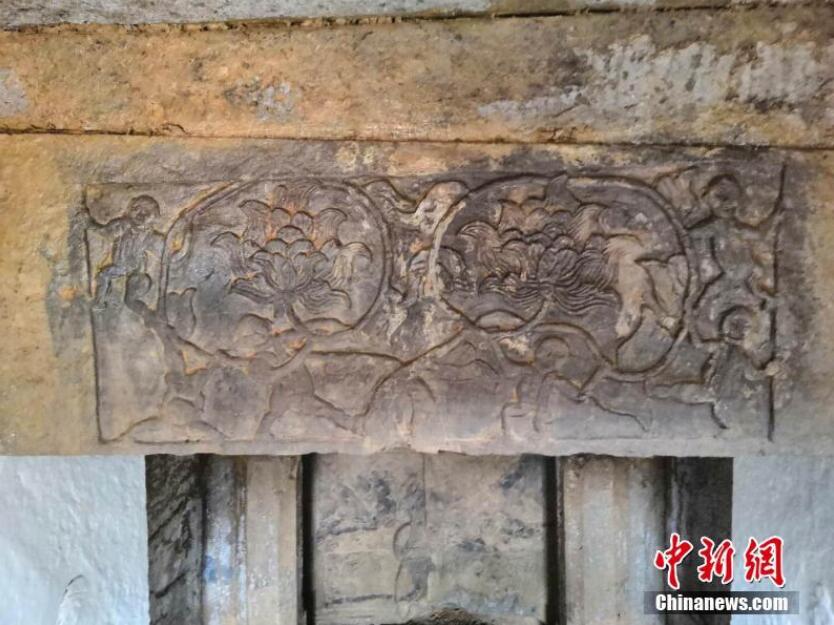 闵凯接着说到,两座墓葬的墓门、藻井、壁龛等处均有装饰精美的雕刻,共计约60组,题材丰富多样,包括人物、祥禽瑞兽、花卉枝蔓。此外在后龛处饰有斗拱,其中一墓室左、右壁各雕刻一幡。文/赵万江 曾实 闵凯 图/闵凯
