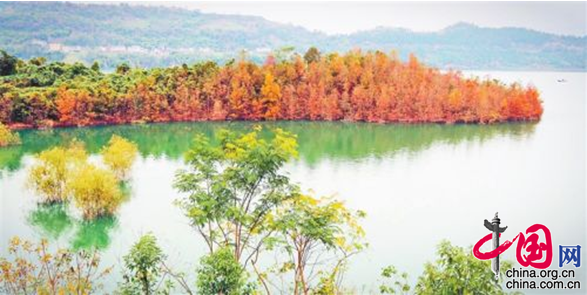 中国网1月15日讯 彩林斑斓,江水悠悠。入冬以来,重庆忠县复兴镇水坪社区段的河湾灌满江水,江边的山丘层林尽染,好一幅宁静而优美的山水画卷。