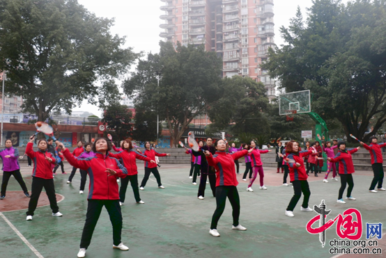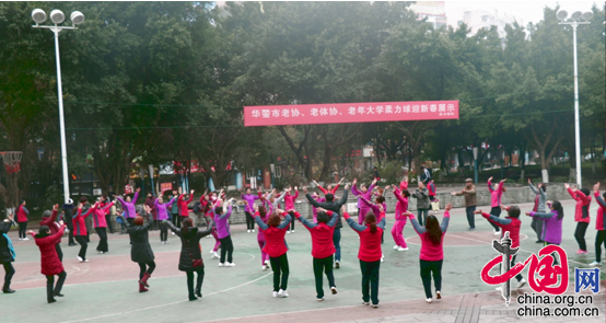 挥动的球拍、动感的音乐、优美的舞姿,将观众带入了一个灵动的舞美世界。1月17日,华蓥市老协、老年大学、老体协举办的2019柔力球迎春展演活动在华蓥山广场开展,100余人参加了展演,为市民展演了柔力球相关的节目12个,展现了华蓥市柔力球队员的精气神。据介绍,柔力球是一项新兴的、具有民族特色的体育运动项目,体现了中华民族博大精深的“太极”文化和以柔克刚、以退为进的体育精神。(杨天军 摄)