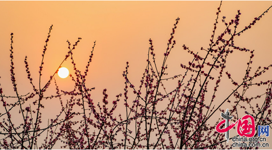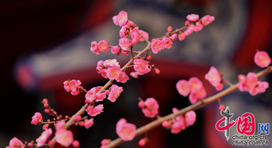 中国网2月11日讯 近日,四川省华蓥市安丙公园倒映在红墙上的红梅花, 恰似一幅花鸟画。 随着气温回升,四川省华蓥市公园、广场和住宅小区内的红梅、红杏等花儿相继绽放,灼灼其华,把新春装点得更加美丽。市民们伴着花香,欢度春节,乐享春光。(邱海鹰)