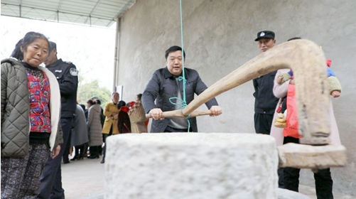 “来,123加油!”在打糍粑体验区,几位外地游客抡起木槌,你一下我一下的用力舂糍粑,雪白的糍粑被反复舂打后变得更加黏。“我们第一次体验打糍粑,刚开始还兴致满满,可是没有技巧两下就没有力气了。”游客张莉一边吃着糍粑一边说,虽然打糍粑的过程有点累,但是吃到自己亲手舂的糍粑,感觉很甜很开心。