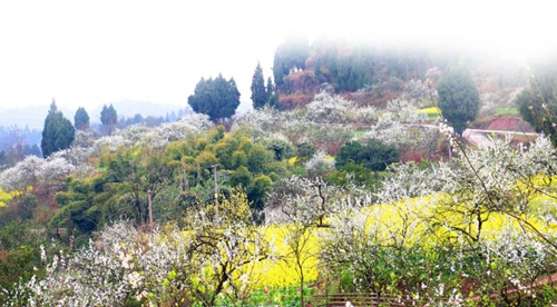 三月是万花竞放的季节,在双江镇九道社区安家湾,洁白如暇的千亩李花与淳朴的田园风光,构成了春日最和谐的画卷。这一幅花的画卷,为双江迎来了第一个“以花为媒”的文化旅游节。3月14日,以“游双江古镇赏千亩李花·采百年珍果品九道农家”为主题的双江古镇首届李花文化旅游节在双江镇九道社区开幕。