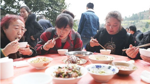 据悉,双江“九大碗”是由农家将现成的鸡、鸭、鱼、肉、蛋,加上时令蔬菜,做成家常菜肴,共十余种。如清蒸鸡鸭、甜烧白、咸烧白、粉蒸肉、蒸肘子等,都是“九大碗”里比较具有代表性的菜肴。以其独特的制作工艺,规模宏大,制式统一,取材容易,成本较低,色香味美而受到老百姓的普遍欢迎,流行千百年,至今不衰。(来源:潼南日报)
