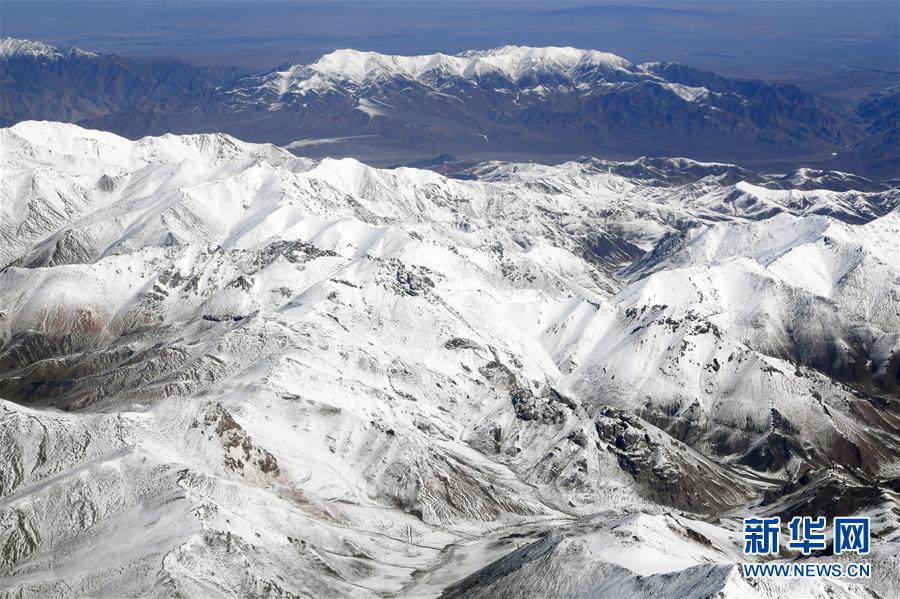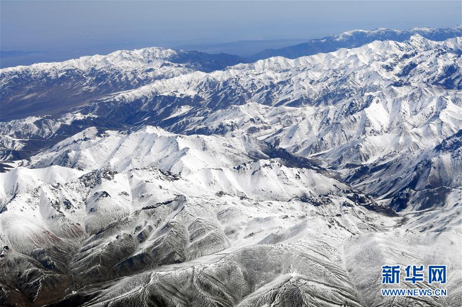 这是4月21日从空中俯拍的祁连山脉。 谷雨节气已至,横跨甘肃、青海两省的祁连山脉依旧白雪皑皑、巍峨壮观。 新华社记者 范培珅 摄
