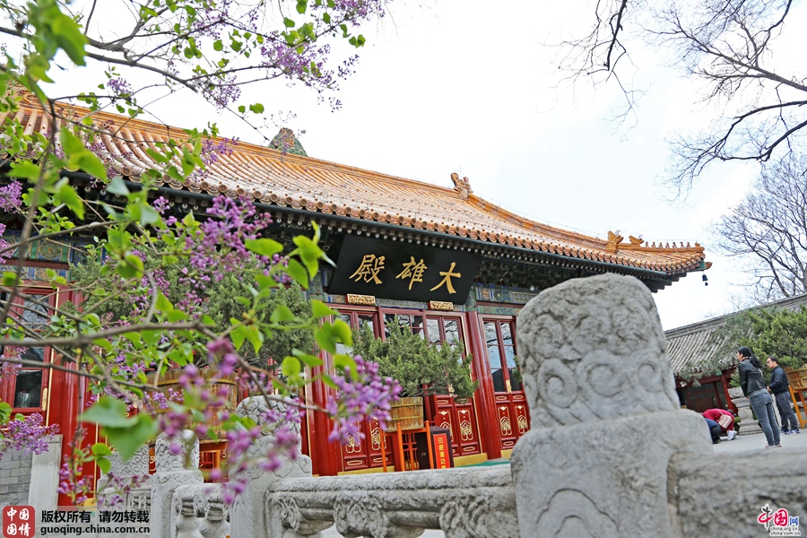 大雄殿殿内共供有三世佛像和铜质十八罗汉像