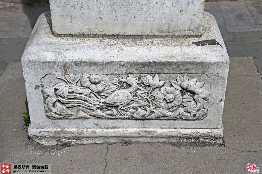 石碑底部精美浮雕