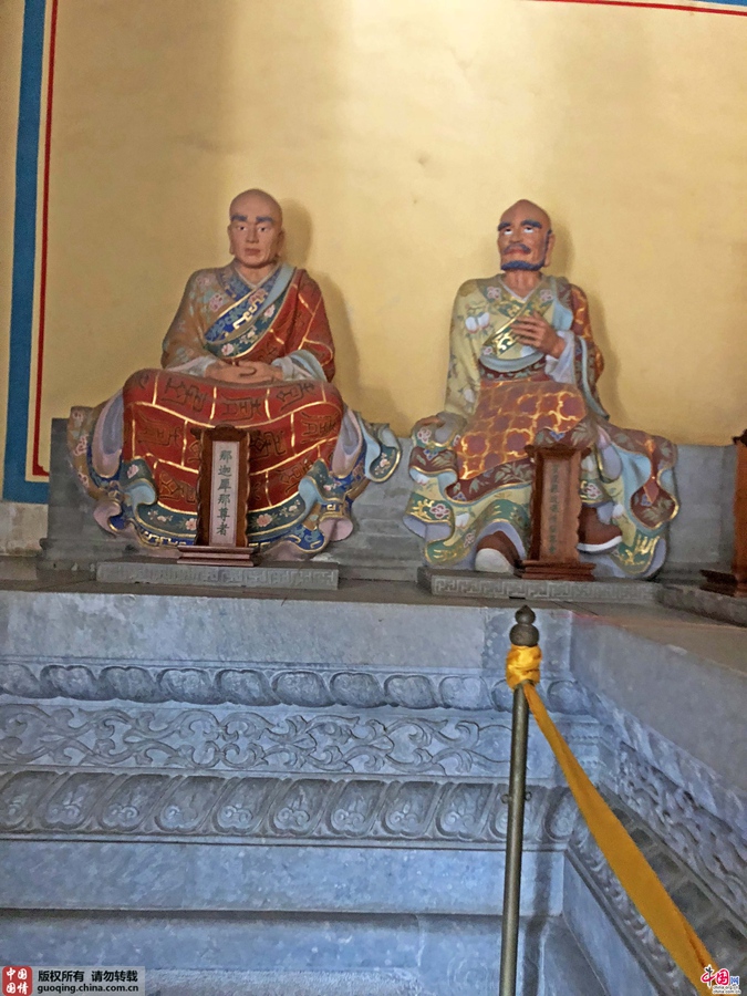 三世佛两侧的十八罗汉泥塑彩绘坐像
