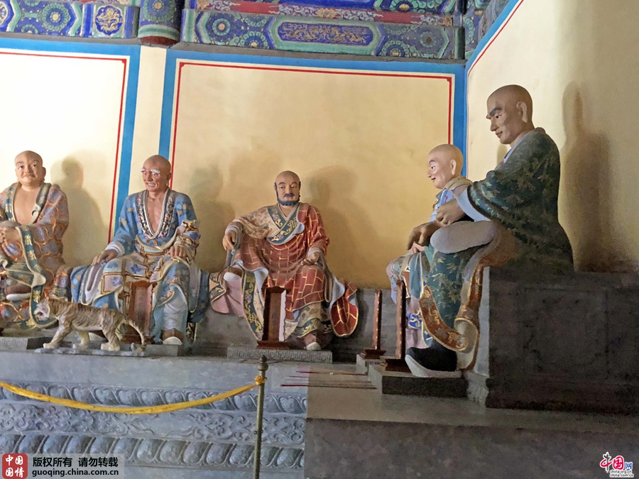 三世佛两侧的十八罗汉泥塑彩绘坐像