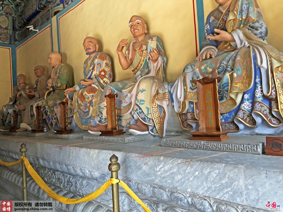 三世佛两侧的十八罗汉泥塑彩绘坐像