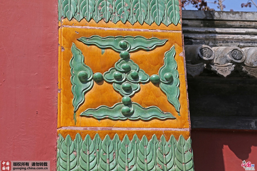 琉璃牌坊饰以黄绿琉璃瓦,华丽精美,五彩斑斓