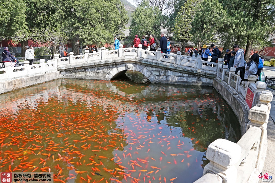 放生池内金鱼数量众多