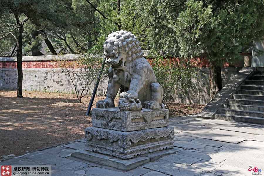 牌坊前一对石狮子