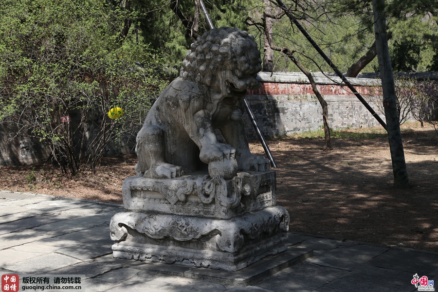 牌坊前一对石狮子