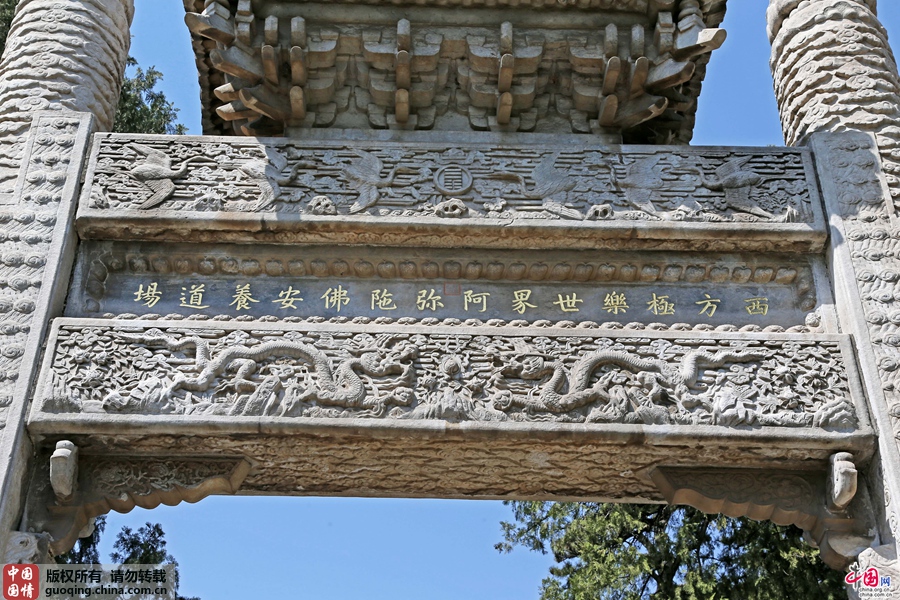 牌坊上金字刻有“西方极乐世界阿弥托福安养道场”