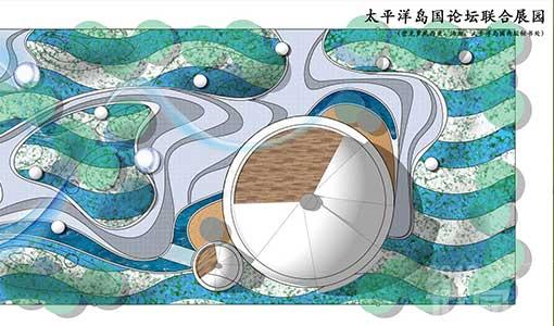 太平洋岛国联合展园名为“太平洋上洒落的珍珠”,该设计旨在展示太平洋地区优美地域风貌与植被生态环境,介绍当地园艺特色与人文风貌,宣传海洋环保理念,以拉近中国与该地区人民之间的友谊,促进双方经贸、旅游、文化、教育等方面的合作。