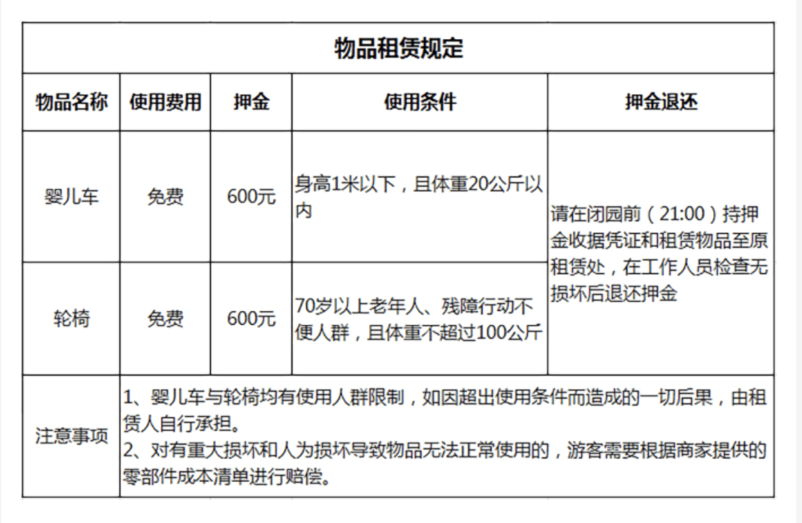 ①游客阅读租赁须知,并确认物品租赁规定
