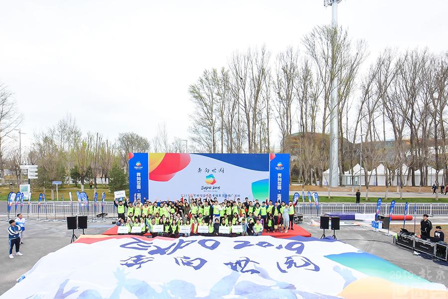 同时,园区举办了“奔向世园”2019北京世园会志愿者招募宣传推广活动总决赛暨闭幕仪式。世园局总经济师林晋文为第一批次出发选手鸣笛发令,鸣笛声响起,参赛队员们以最饱满的精神状态奔向心中的“世园之门”。经过决赛紧张激烈的角逐,各参赛队伍陆续抵达终点。颁奖仪式上,世园局总经济师林晋文、志愿者部部长代兵分别为获奖优胜队伍颁发获奖证书。颁奖仪式结束后,全场迎来了激动人心的时刻,伴随着青春活力的音乐,“奔向世园”的文化旗帜在志愿者手中缓缓撑起,全场齐声高喊“奔向世园,志愿有我!2019北京世园会,我们来了!”至此,历时5个月,覆盖高校数量80余所的“奔向世园”志愿者招募推广活动圆满结束。活动为首都高校学子开启了一扇了解世园会的大门,充分调动了高校学生参与世园会志愿服务的工作热情,同学们在进行挑战的同时将获得极为丰富的世园知识和志愿者知识,广大世园会志愿者志在服务的同时也将收获自身的全面发展。开园时,志愿者将以整齐划一、朝气蓬勃、健康向上的精神面貌,在世园会这个大舞台上为美丽中国建设贡献自己的力量。