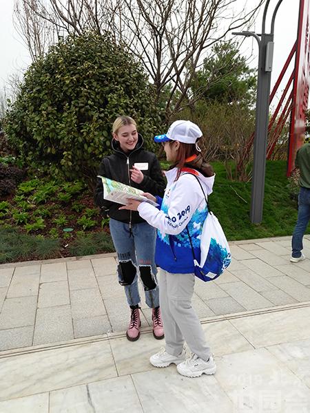 与4月13日半负荷压力测试不同,本次全负荷压力测试志愿服务增加了25个岗亭的50名咨询引导志愿者,30名机动志愿者和国际展园的部分岗位点。因有降雨,气温骤降,志愿者的服务热情丝毫未减。在下午高峰时段,人流量较大的俄罗斯和德国展区,每名志愿者每分钟要服务2名以上游客,志愿者专业的服务素养与能力令游客称赞。