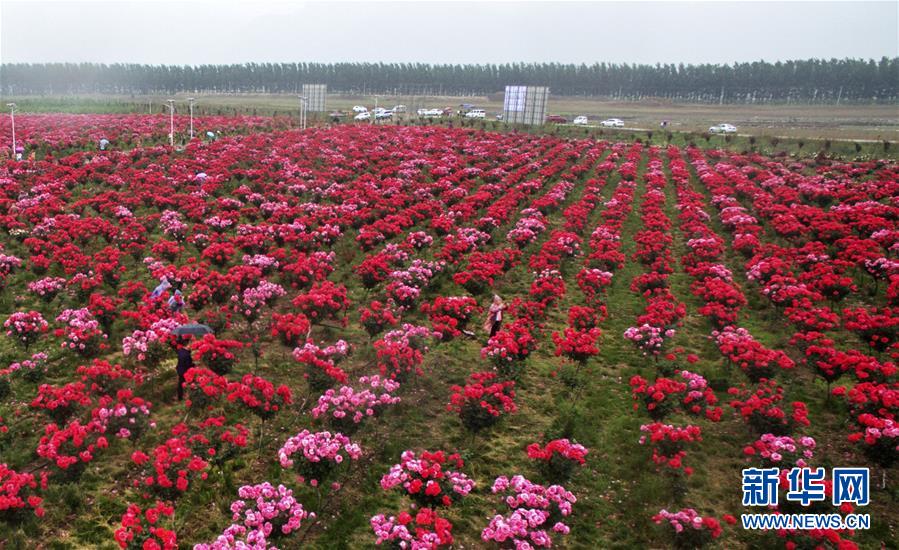 5月16日,游人在新下社区扶贫产业园月季苗圃游览(无人机拍摄)。 近日,陕西省渭南市华州区下庙镇新下社区200多亩月季盛开,吸引游人前来观赏。近年来,该社区建设扶贫产业示范园,打造集产业示范、农耕体验、休闲观光等于一体的田园综合体,帮助农户脱贫增收。 新华社记者 陶明 摄