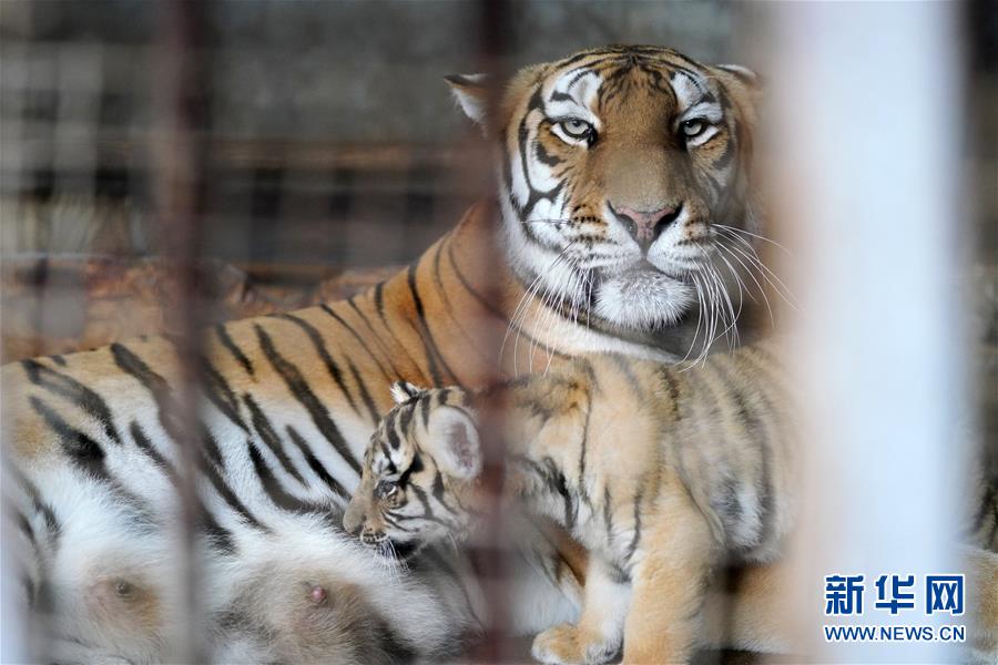 这是7月11日在横道河子东北虎林园虎舍内拍摄的东北虎。新华社记者 王建威 摄
