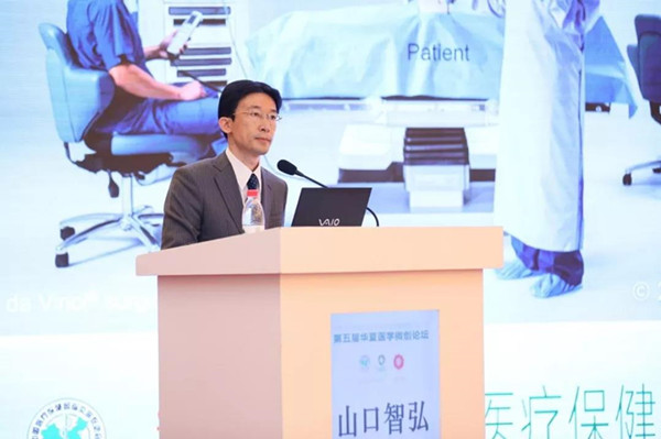 山口智弘通过腹腔镜手术、达芬奇机器人手术视频示例,对比传统手术、腹腔镜手术、达芬奇机器人手术利弊。山口智弘指出,腹腔镜手术较传统开腹手术有无可比拟的优势,但由于人类一些器官的生理、解剖结构的特殊性和传统腔镜技术的局限性,随着技术发展突飞猛进,达芬奇机器人应运而生,山口智弘通过经典的直肠癌手术视频演示,展现达芬奇优势。较腹腔镜,达芬奇手术机器人帮助微创外科医生以更高的精度和更少的误差进行手术操作。它可以称得上是当下科技含量其他所无法比拟的微创外科“武器”。