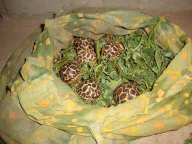 (图中是被装在袋子中运输的印度星龟 版权:世界动物保护协会)