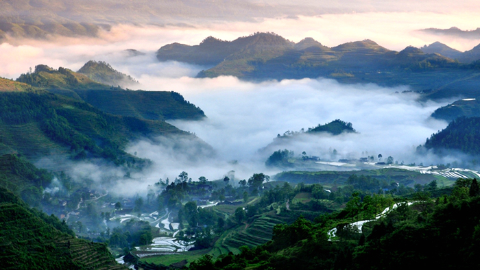 为什么选择川河盖?川河盖旅游区位于秀山县涌洞乡境内,距秀山县城约40公里,是重庆东南唯一兼具草场、花海特色的高山生态景观区。当年红军浴血奋战的英雄壮举,在川河盖的奇峰异石上谱写了中国革命的光辉篇章。 在平均海拔1230米的悬崖绝壁之上,方圆28平方公里的川河盖土地平旷、雾霭流岚、山花烂漫。春看映山红遍,夏赏格桑花开,秋观芭毛飞絮,冬赏南国冰雪,被称为“悬在云端的花园”。