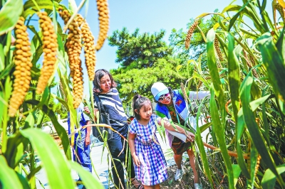 白露高粱秋分豆,先农坛演起“丰收”景。这是100多年来先农坛首次恢复秋收。昨天(8日)是白露节气,十组家庭受邀到先农坛割谷穗,互赠《秋牛图》,体验收获的乐趣。同时,《一亩三分擘画天下——北京先农坛的耤(jí)田故事》展览开幕讲丰收。