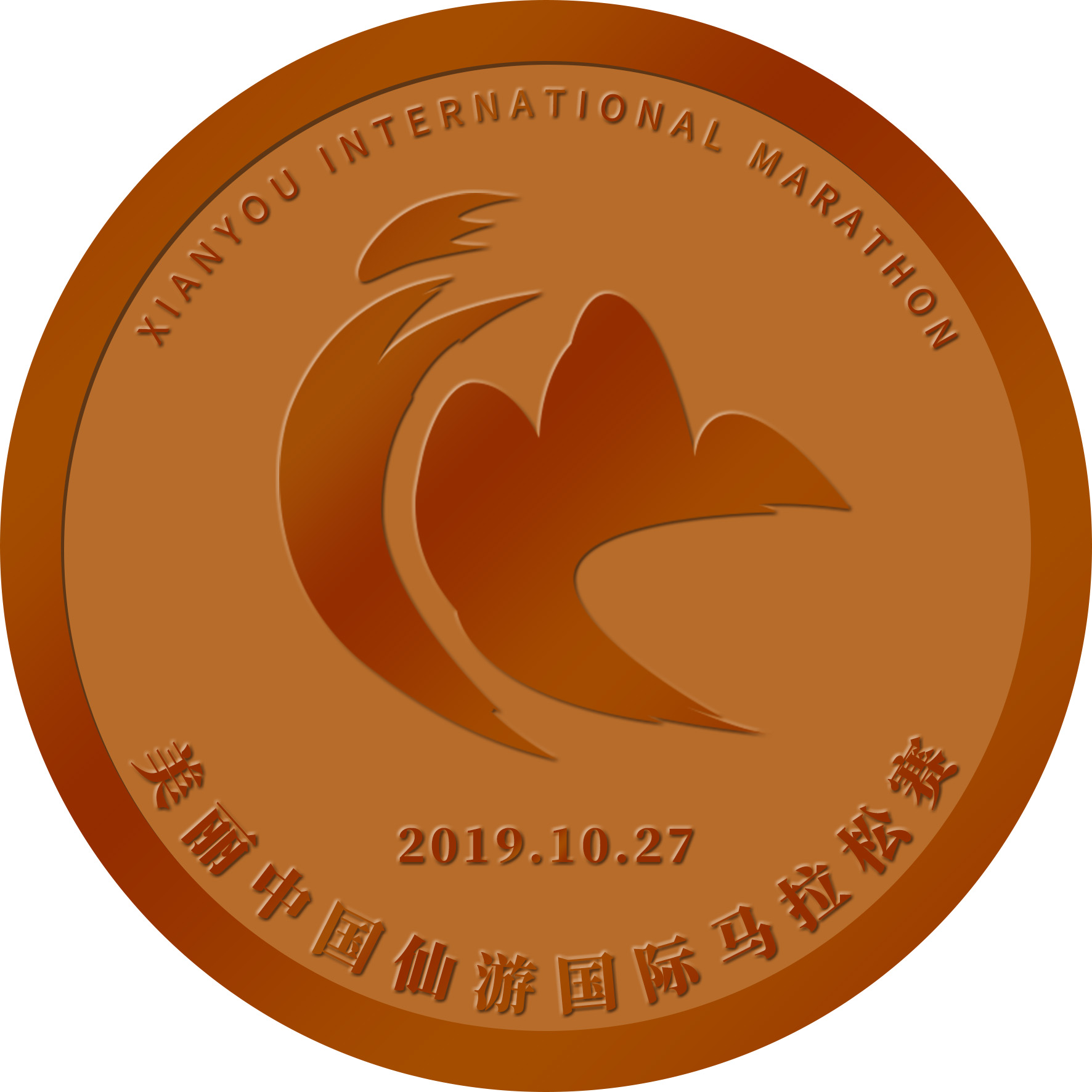 奖牌正面是仙游马拉松的LOGO,设计涵盖仙游当地三大元素:历史悠久的仙游古典家具制作技艺;穿流而过的木兰溪;美丽的大蜚山,3个元素共同构成一个“仙”字,通过一个小小奖牌,将仙游的文化、旅游和独特的地理位置全方位的展现在世界面前。背面图案是本次仙游马拉松全程赛道,整体形状似一只展翅飞翔的和平鸽,向中华人民共和国成立70周年献上美好祝福。