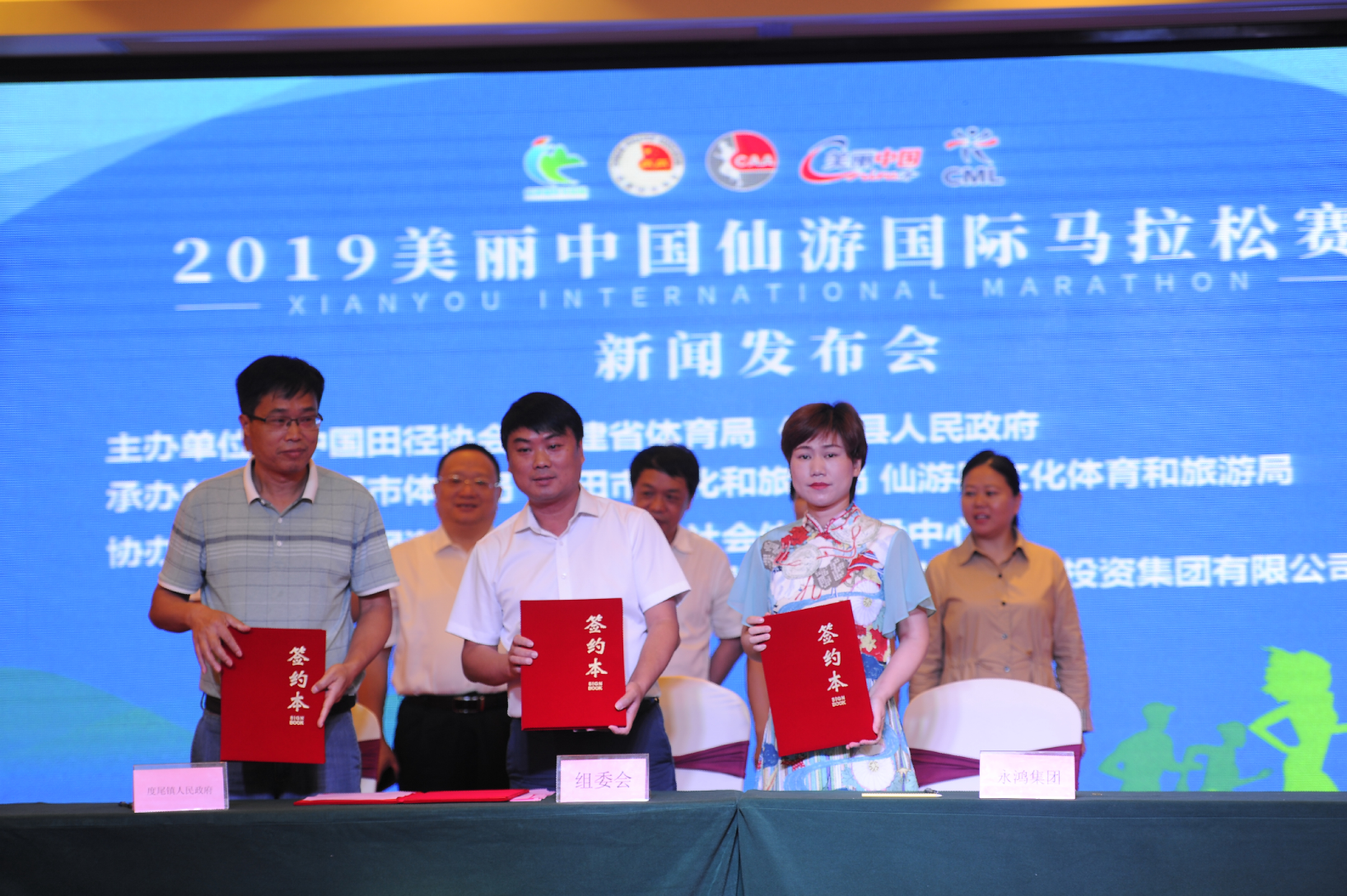 9月28日,在赛事倒计时30天之际,仙游县政府组织召开了2019美丽中国仙游国际马拉松赛新闻发布会。会上,赛事组委会介绍了参赛选手、奖牌设计、安保医疗、志愿者等各项赛事工作的筹备进展情况以及赞助商签约仪式。