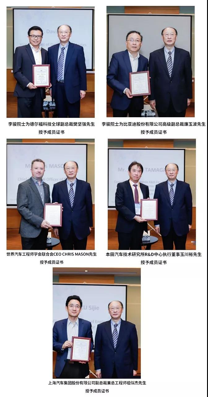 会议上,按照惯例为加入的iTAC新成员举行了授牌仪式,委员会新成员包括德尔福科技全球副总裁樊坚强先生、比亚迪股份有限公司高级副总裁的廉玉波先生、世界汽车工程师学会联合会的CEO Chris Mason先生、本田汽车技术研究所R&D中心执行董事玉川裕先生、上海汽车集团股份有限公司副总裁兼总工程师祖似杰先生。
