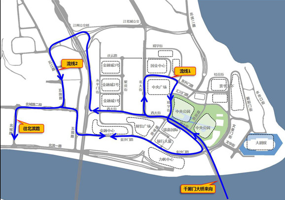 黄花园大桥往国金中心车辆流线示意图。第二届城市花博会组委会供图 华龙网发