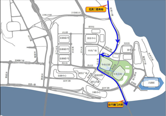 届时,觐阳门街由现状单向通行,变更为双向通行;东升门路—北滨二路路口禁止车辆往寰宇天下方向行驶;金沙门路—精学街路口禁止车辆往大剧院方向行驶。