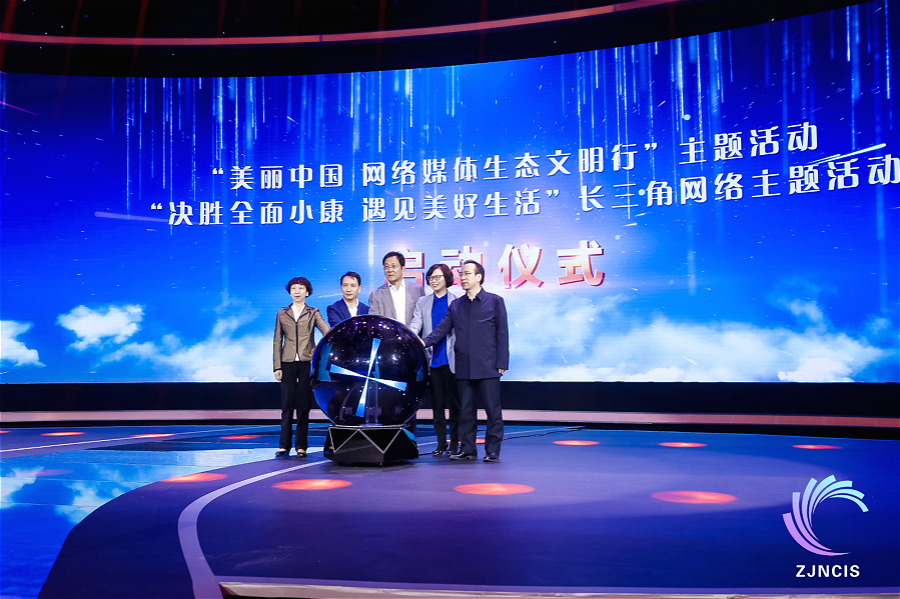 中央网信办网络新闻信息传播局巡视员兼副局长谢登科、上海市委网信办副主任杨俊、浙江省委网信办副主任胡红宪、安徽省委网信办副主任文霞平和江苏省委网信办副主任周蕾,共同启动了网络主题活动。