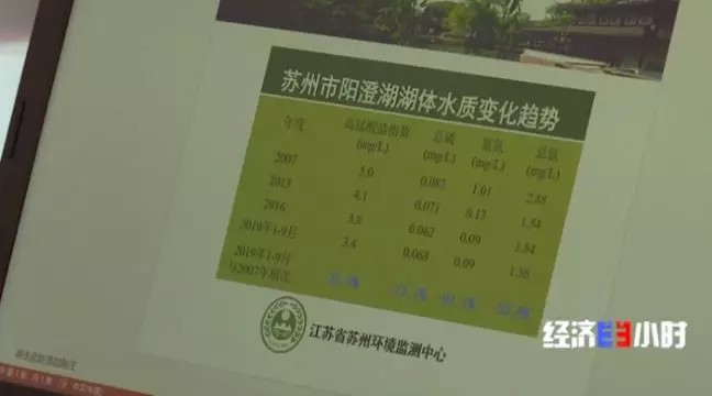 在江苏省苏州环境监测中心,记者看到了阳澄湖湖体水质变化表,从2007年,到2019年水质中高锰酸盐、氨氮、总氮指数都有着非常大的降幅。但记者也同时发现,从2016起,总磷的指数就一直保持在0.06毫克/升左右,四年时间没有大的变化,总磷指数0.06毫克每升属于四类水源标准,而四类水源主要适用于一般工业用水区及人体非直接接触的娱乐用水区。而按照我国《地表水环境质量标准》的要求,三类及以上水源才可以作为饮用水源。