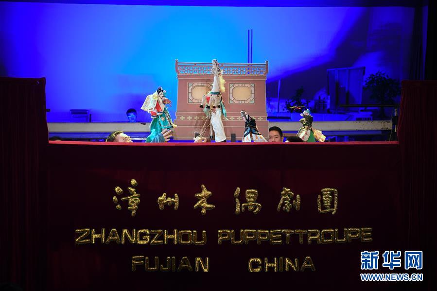 漳州木偶剧团演员在表演布袋木偶戏《卖马闹府》(11月12日摄)。